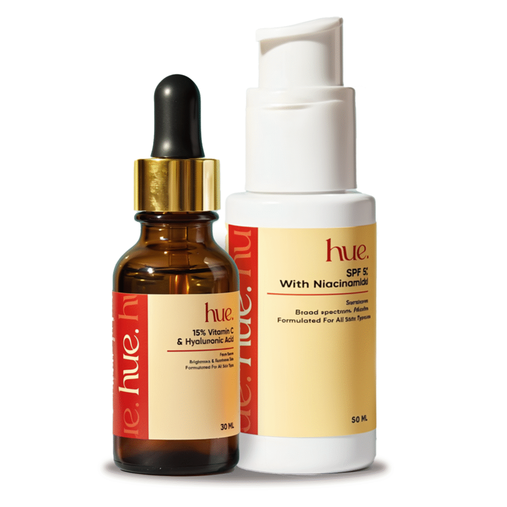 Bring out your skin’s natural glow while keeping it safe from sun damage. Hue’s Glow & Protect Combo combines the 15% Vitamin C + Hyaluronic Acid Face Serum and SPF 50 Sunscreen with Niacinamide — a perfect duo for brighter, hydrated, and protected skin.